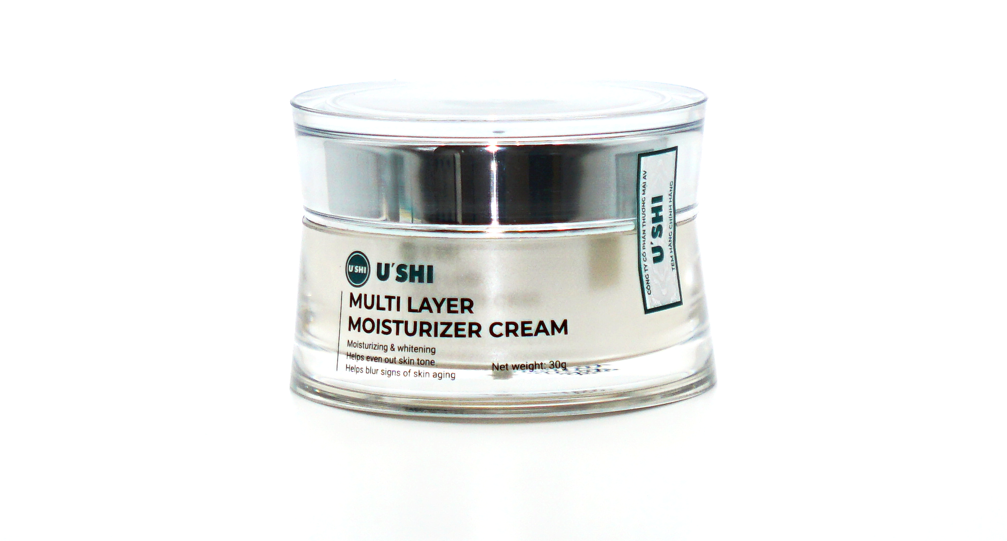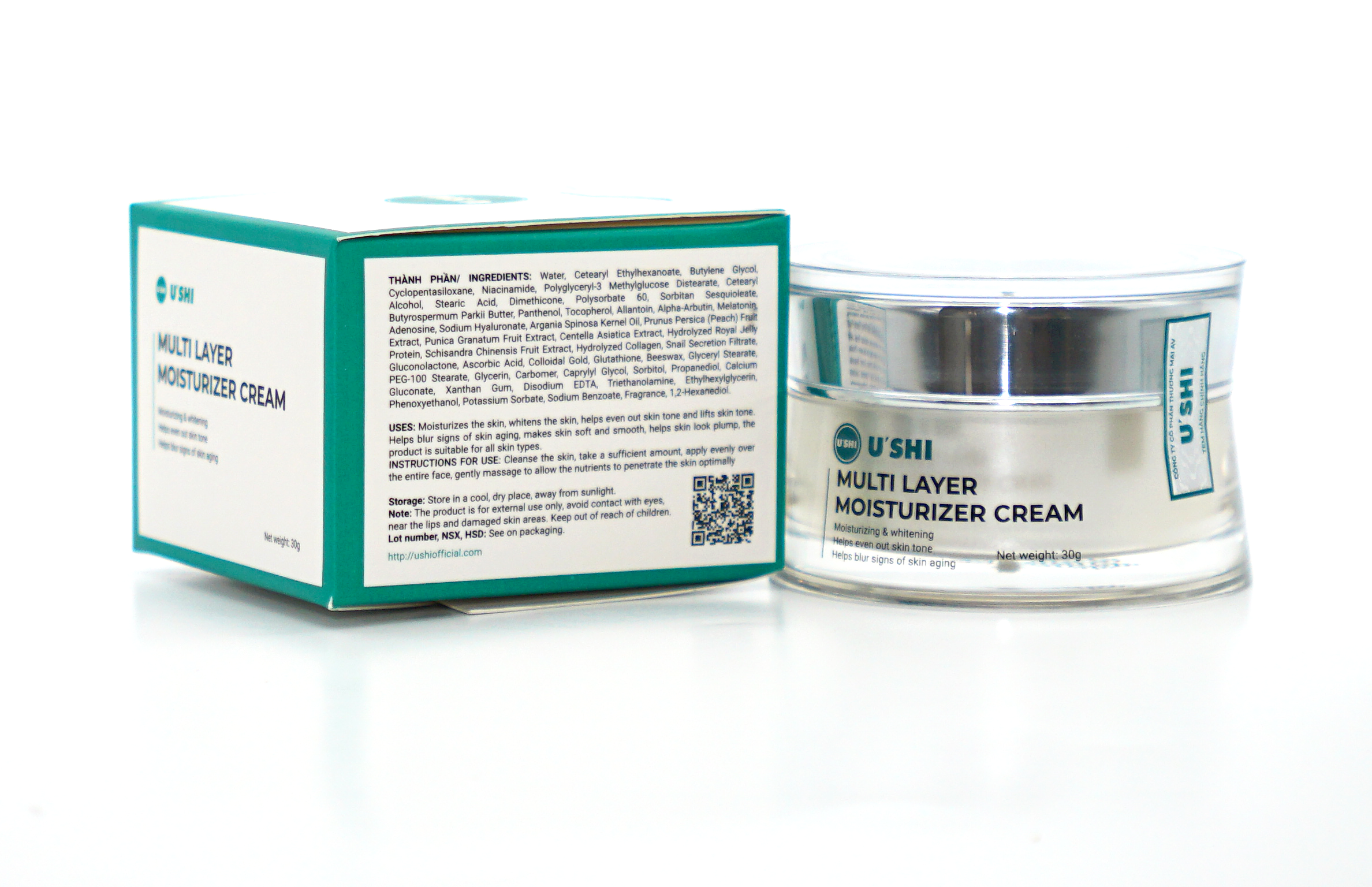 Kem dưỡng ẩm Ushi là giải pháp chăm sóc da toàn diện, kết hợp giữa các hoạt chất dưỡng trắng hiện đại và các chiết xuất thiên nhiên quý hiếm. Sản phẩm không chỉ cấp ẩm sâu mà còn nuôi dưỡng làn da sáng mịn, làm mờ các dấu hiệu lão hóa, mang lại vẻ tươi trẻ đầy sức sống.